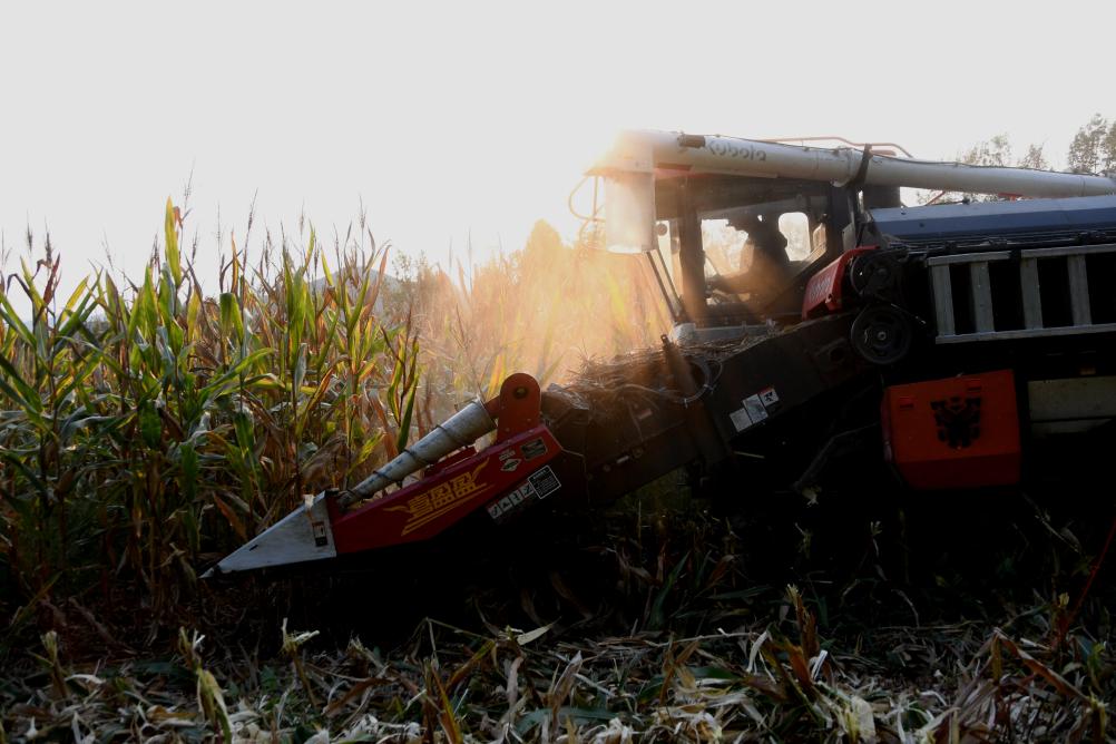 “今天已经收了近100亩,还是得抓紧,玉米成熟后在雨水环境中时间长了容易霉变,会影响质量。”何凯说。