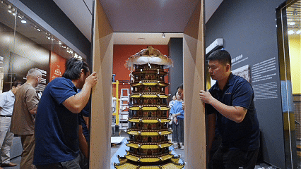 9月19日,大报恩寺琉璃塔模型在南京大报恩寺遗址博物馆开箱,时隔110年首次回到南京大报恩寺遗址原址。