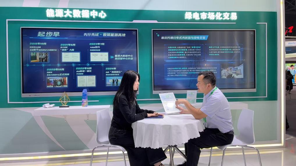 9月20日,2025世界制造业大会国家电网展区内,国网合肥供电公司工作人员为相关企业解答绿电购买、使用等相关问题。(受访者供图)