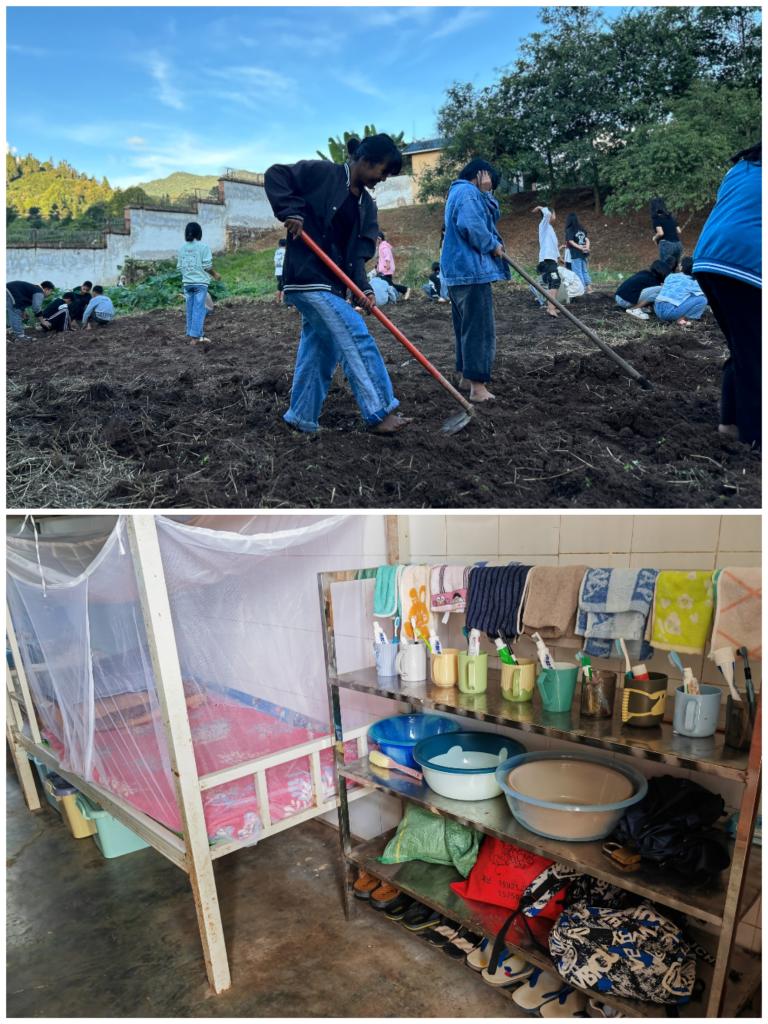 每个班还有一小块菜地