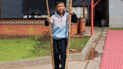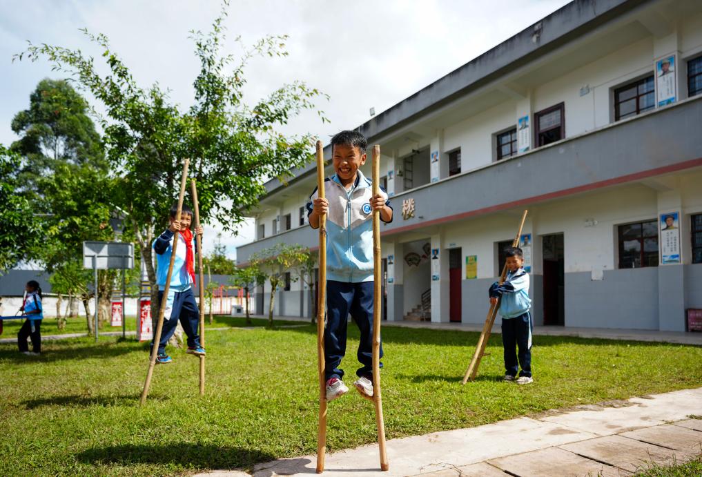 戈的小学孩子们在踩高跷