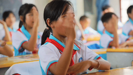 老师们会和孩子们一起做眼保健操、眺望远处