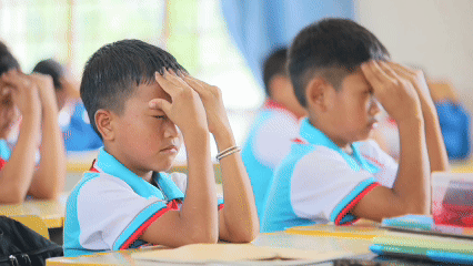 下课铃响,眼保健操音乐响起
