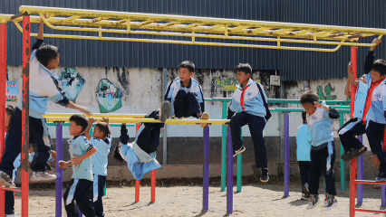 跳长绳、打陀螺、玩双杠……