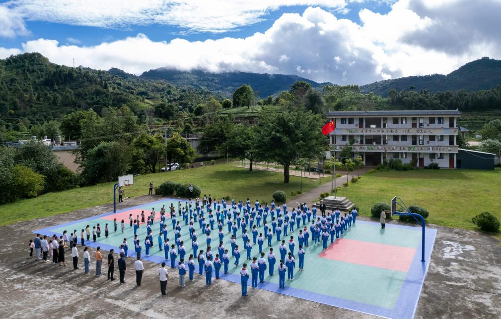 记者到达学校时正赶上升旗仪式