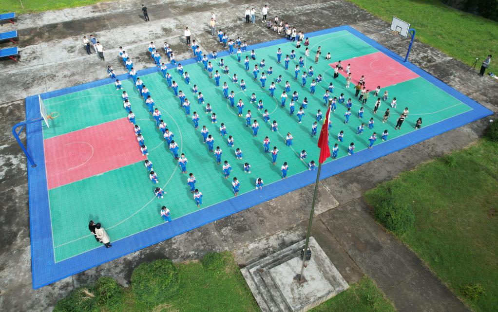 腊福小学学生准备做课间操