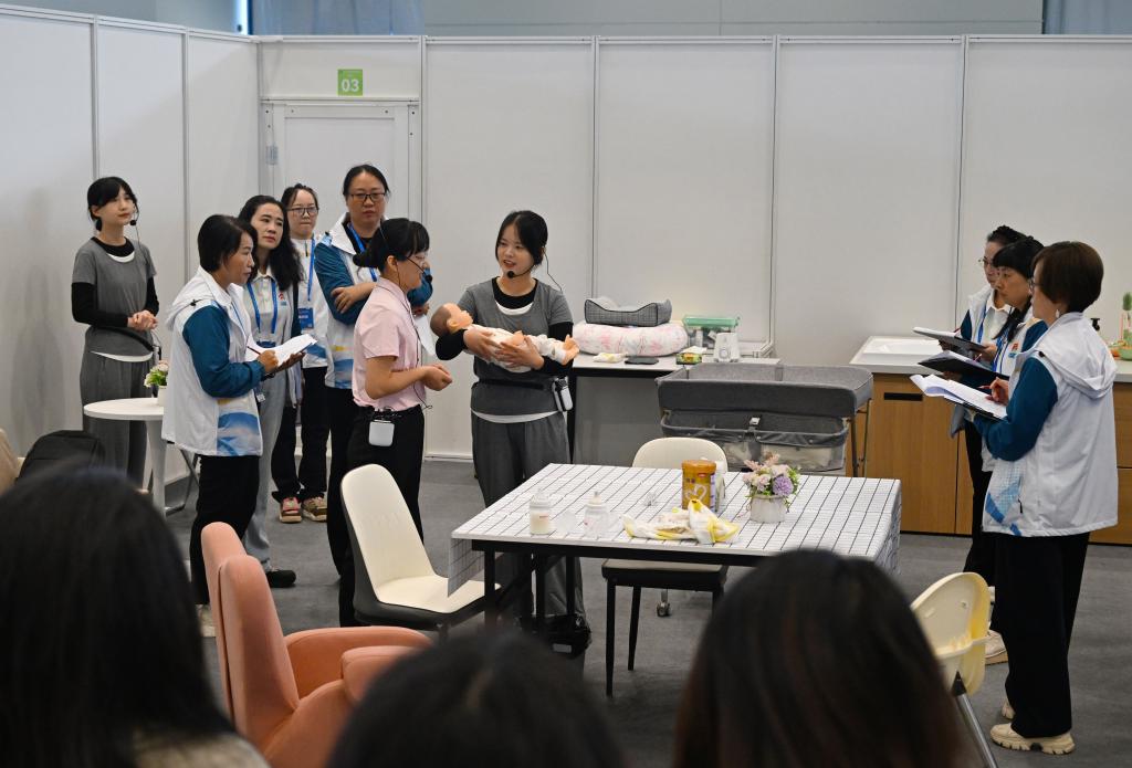 9月20日,选手在育婴项目比赛中。新华社记者 郝源 摄