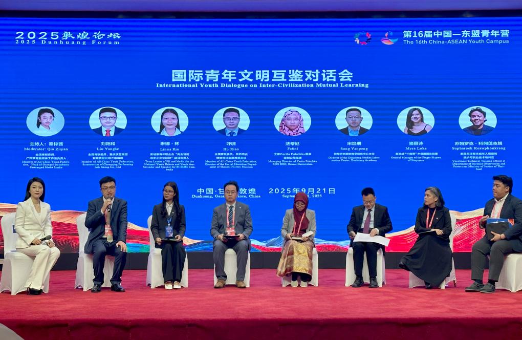 作为2025敦煌论坛的重要组成部分,这场以“文明互鉴聚合力 青春同行创未来”为主题的国际青年文明互鉴对话会21日在甘肃敦煌举行,来自中国及东盟多国青年代表近70人齐聚一堂,共话在推动文明交流互鉴中的责任与担当。