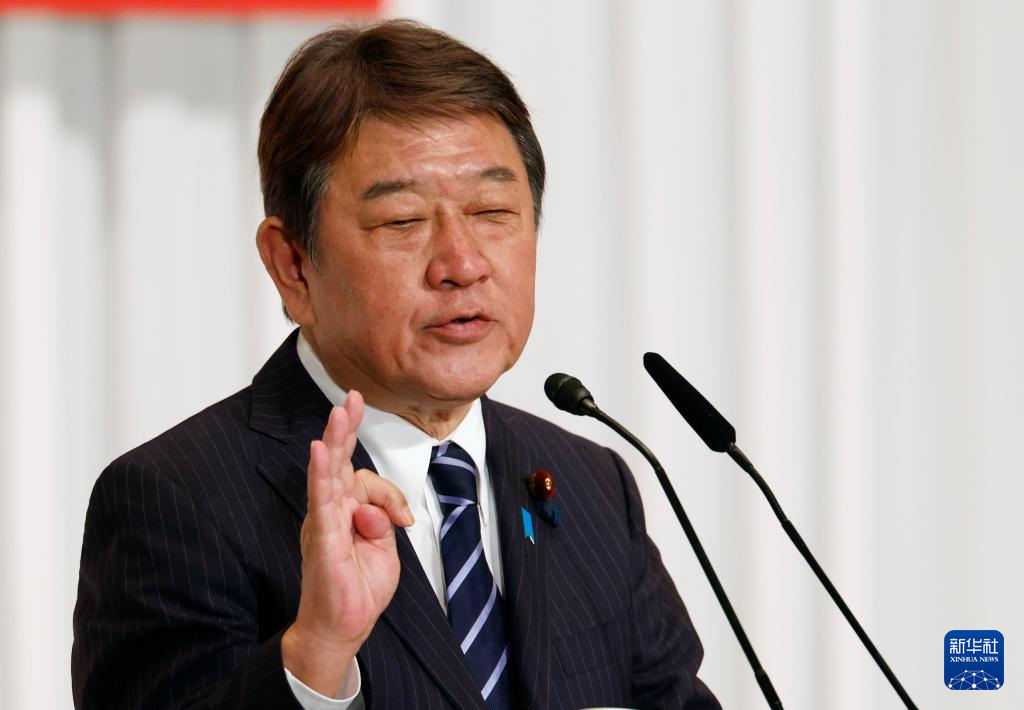 9月22日,在日本东京,日本自民党总裁选举候选人、自民党前干事长茂木敏充在自民党总裁选举政见发表演讲会上发言。新华社发(Pool图片,弗兰克·罗比雄摄)
