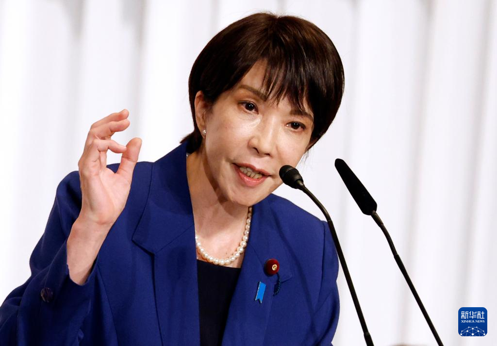 9月22日,在日本东京,日本自民党总裁选举候选人、前经济安全保障担当大臣高市早苗在自民党总裁选举政见发表演讲会上发言。新华社发(Pool图片,弗兰克·罗比雄摄)