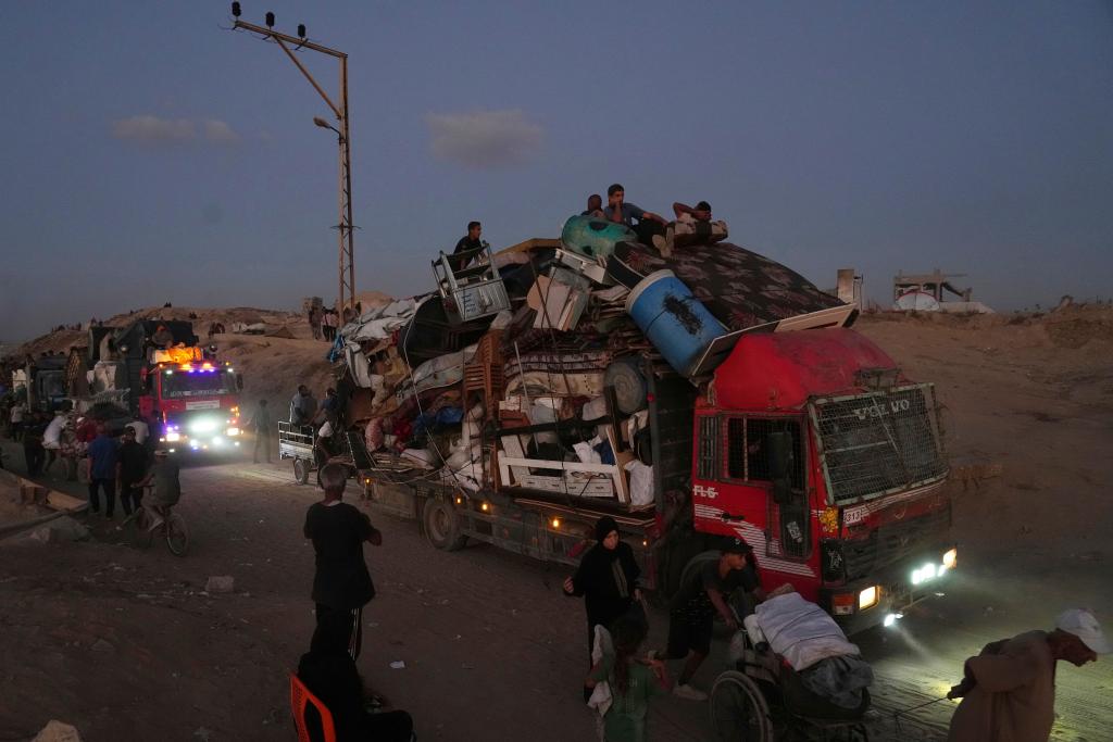 这是9月19日在加沙地带努赛赖特拍摄的从加沙地带北部向南撤离的民众。新华社/美联
