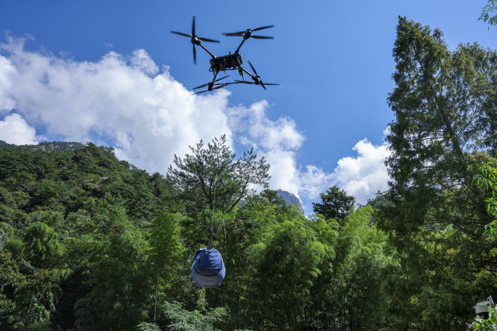无人机正在黄山运送物资。(黄山市委宣传部供图)