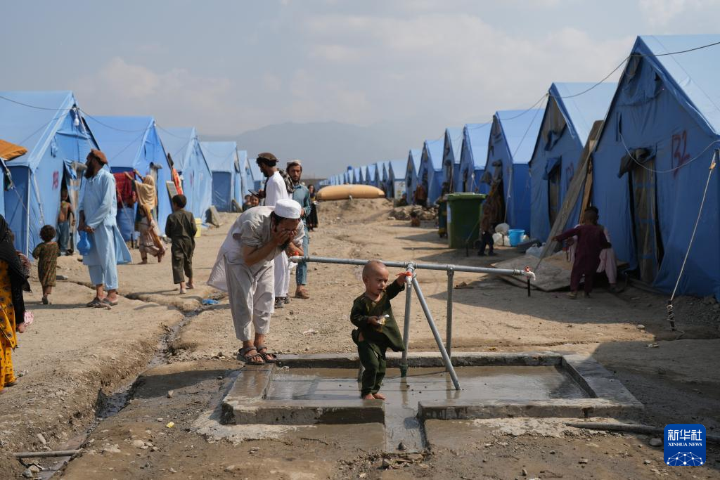 这是9月22日在阿富汗库纳尔省乌斯曼营地拍摄的集体供水处。新华社记者 李昂 摄
