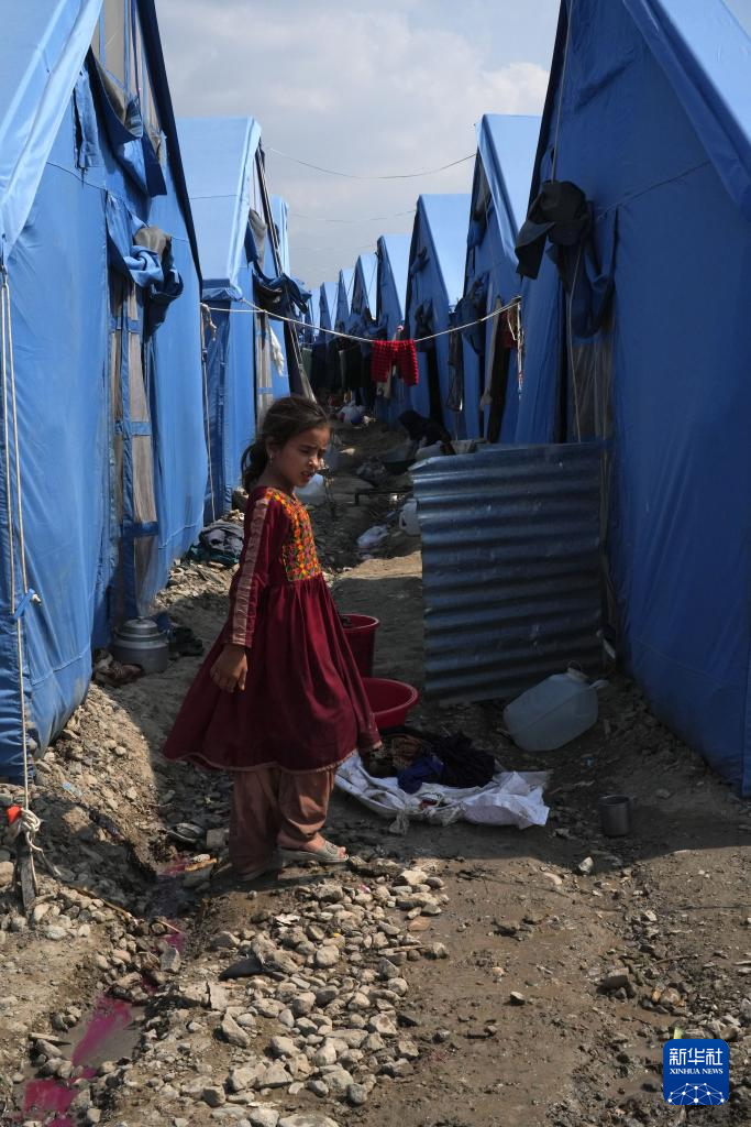9月22日,在阿富汗库纳尔省乌斯曼营地,一名小女孩在帐篷之间走过。新华社记者 李昂 摄