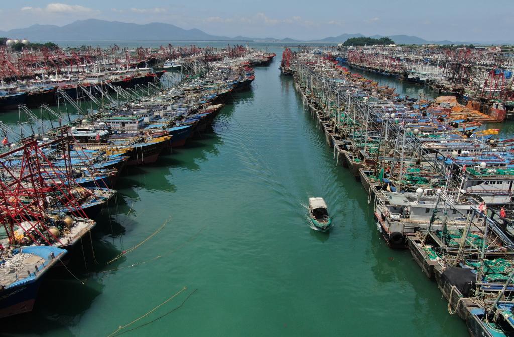 9月23日,在广东阳江市海陵岛闸坡国家中心渔港停满了归港避风的渔船(无人机照片)。 新华社记者 邓华 摄