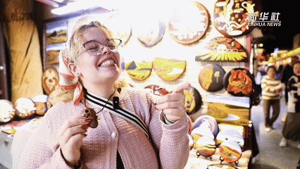美国中央俄克拉何马大学学生布丽安娜·劳奇第一次出国就来到敦煌。她在美国学习长笛,游览敦煌夜市时买下一只当地的陶埙。第一次吹响中国的古老乐器,她难掩兴奋地告诉记者,通过文化艺术与当地人民建立连接真的很美妙。