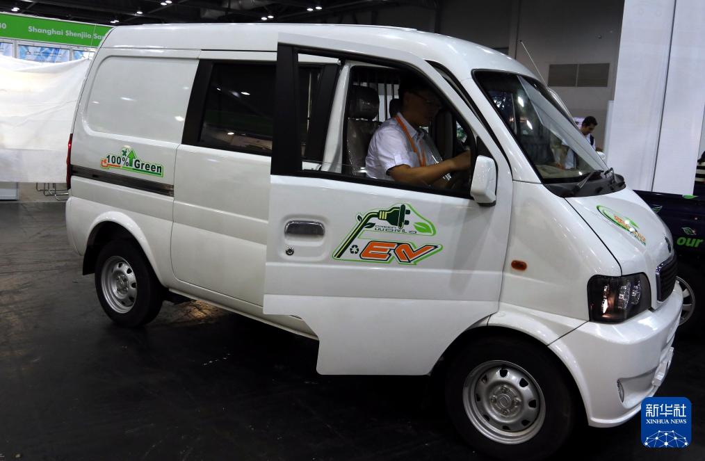 2012年10月27日,在香港举行的国际环保博览会上,东风汽车公司展出最新推出的微型商用电动车。新华社记者 李鹏 摄