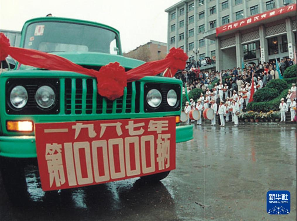 1987年,第二汽车制造厂庆祝年产量突破10万辆大关。新华社发