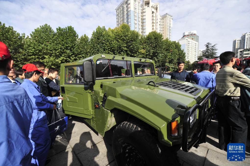 2009年9月21日,人们在东风汽车公司建设四十周年成就展上参观东风猛士汽车。新华社记者 郝同前 摄