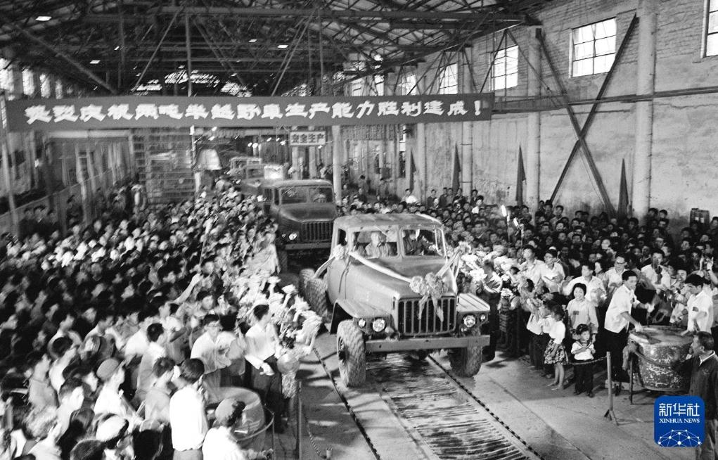 1975年6月,二汽第一辆EQ240驶出生产线。新华社发