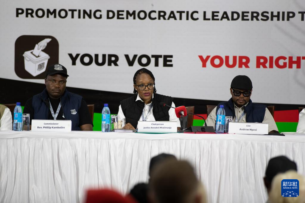 9月24日,在马拉维首都利隆圭,马拉维选举委员会主席安娜贝尔·姆塔利曼贾(中)宣布总统大选结果。新华社记者 彭立军 摄