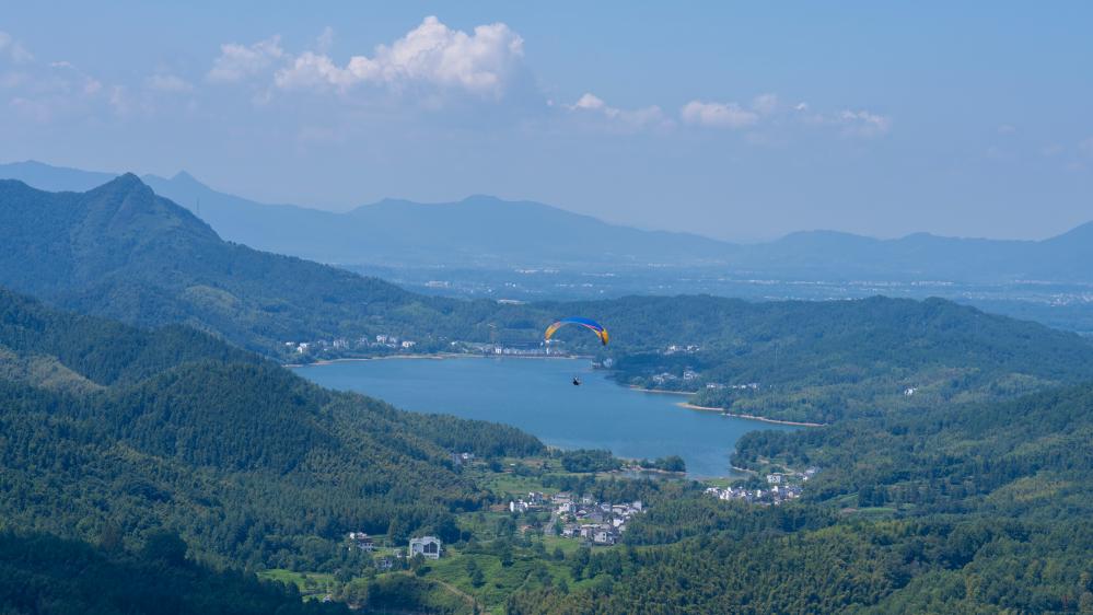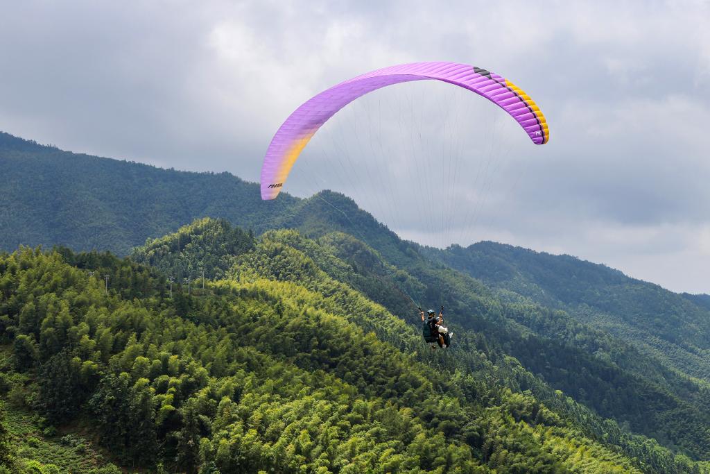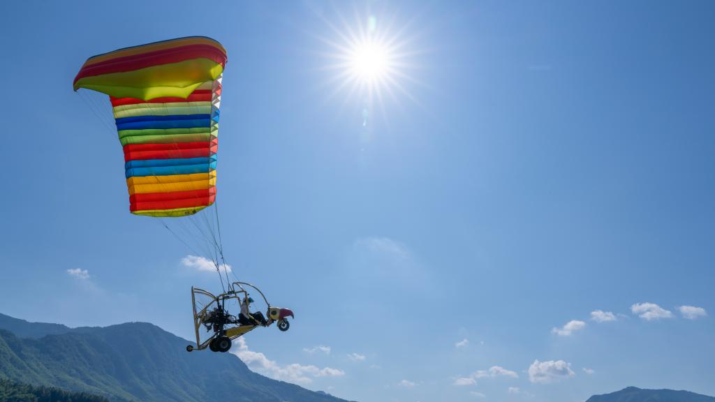 8月19日,在安徽省黄山市黟县宏村航空飞行营地,动力伞正在起飞。新华社发(汪澄 摄)