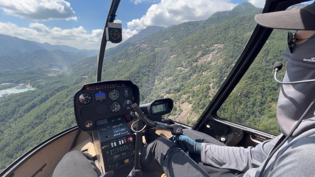 5月17日,在安徽省黄山市黄山区,飞行员操作直升机带游客体验低空旅游项目。新华社发