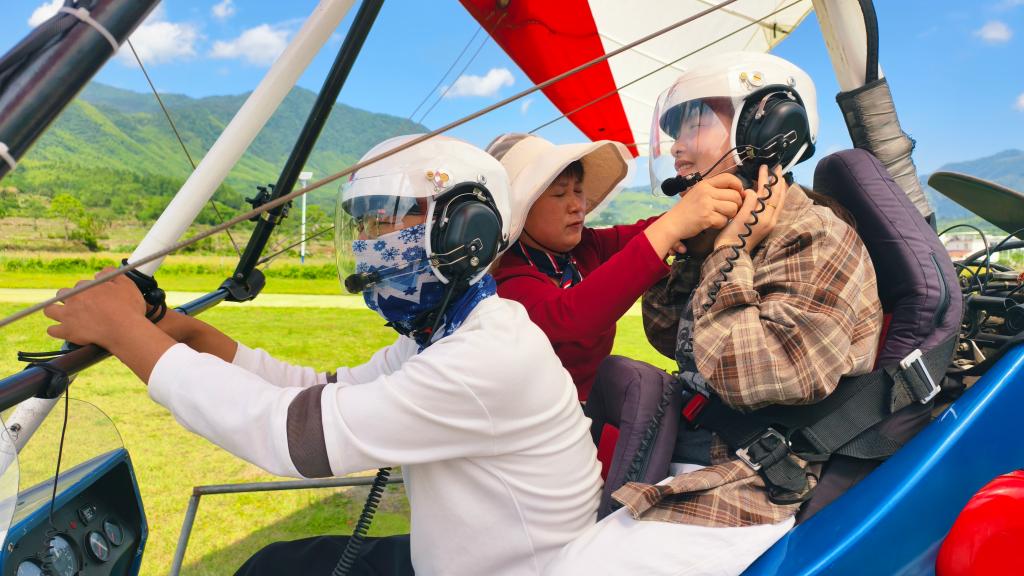 5月17日,在安徽省黄山市黟县宏村航空飞行营地,游客准备体验三角翼飞行。新华社发(樊成柱 摄)