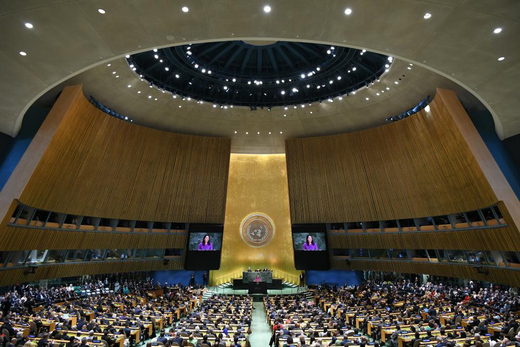 9月23日,在位于纽约的联合国总部,第80届联大主席贝尔伯克在第80届联合国大会一般性辩论开幕式上发言。新华社记者李睿摄