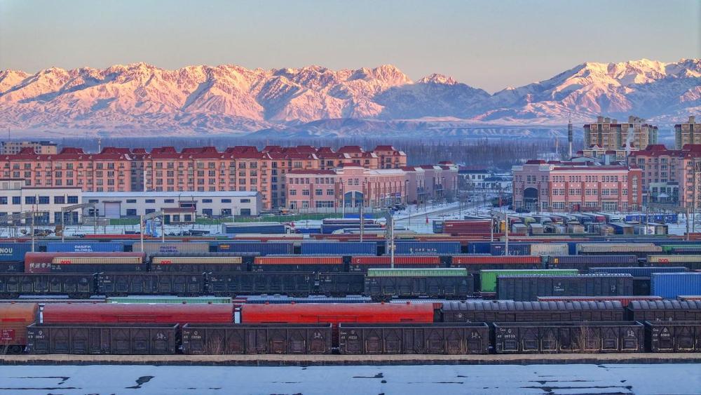 这是12月25日拍摄的在霍尔果斯铁路口岸准轨场。新华社发(王文杰摄)