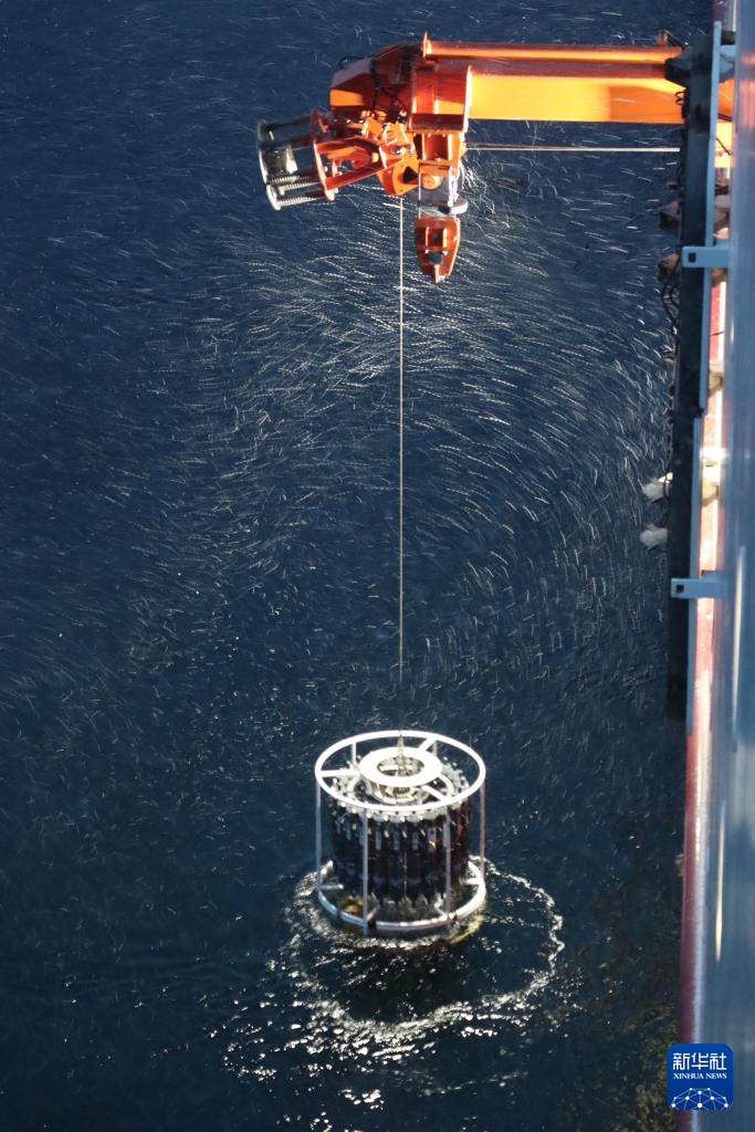 9月8日,“雪龙2”号回收CTD(温盐深剖面仪)。新华社记者 刘诗平 摄