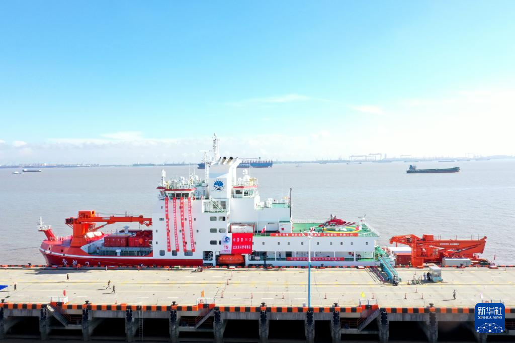 9月26日拍摄的停靠在上海国内基地码头的“雪龙2”号(无人机照片)。新华社记者 刘诗平 摄