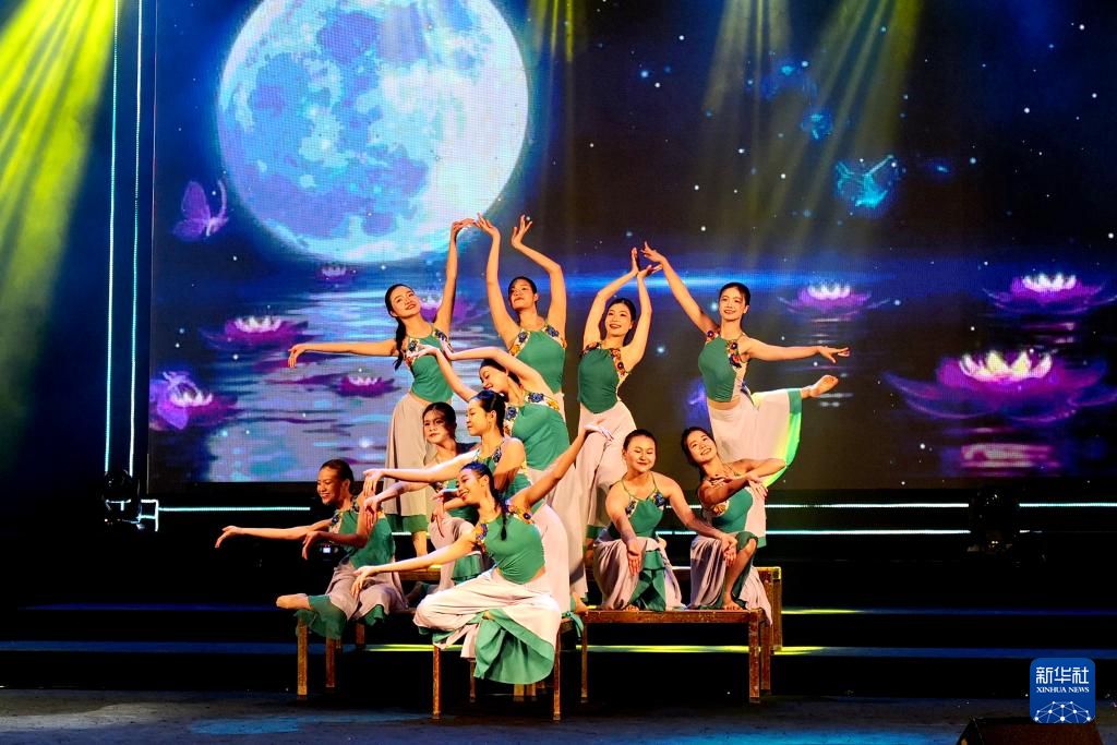 9月25日,在越南河内越南国家歌舞剧院,越南演员在2025年中越中秋文艺晚会上表演舞蹈。新华社记者 刘颍 摄
