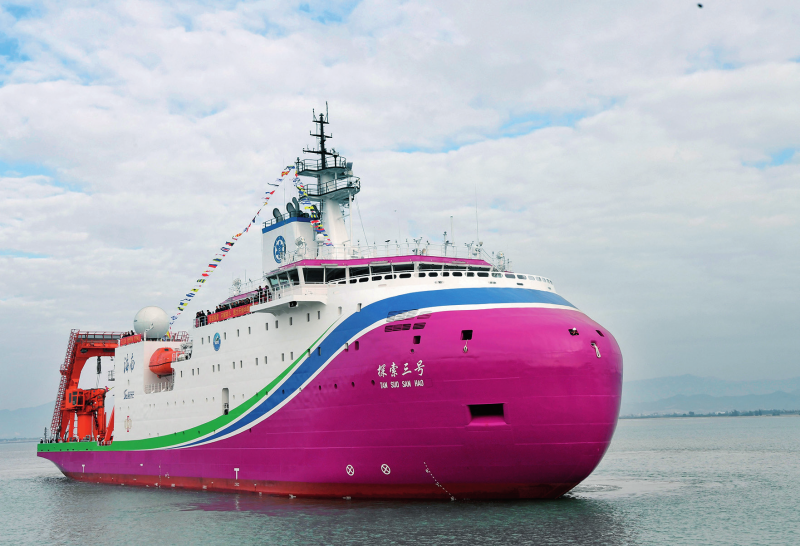 我国首艘设计拥有完全自主知识产权的深远海多功能科学考察及文物考古船“探索三号”抵达三亚崖州湾科技城的南山港公共科考码头并正式入列(2024年12月29日摄)赵颖全摄/本刊
