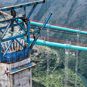 “要是在大江大河上的话,万吨浮吊可以说是想吊哪里就可以吊哪里,但在绵延不绝的山区、悬崖峭壁之间,大吨位的设备或材料运输极为不便。”花江峡谷大桥项目总工程师刘豪说。