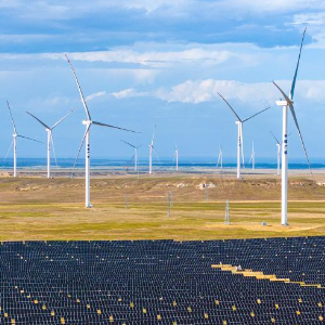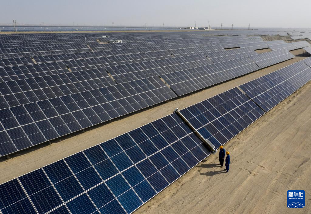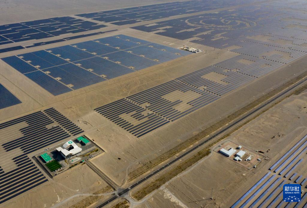 昔日的戈壁荒漠,如今由太阳能光伏板汇聚成“蓝色海洋”,由风力发电机组成“白色森林”,正孕育着无限“风光”。
