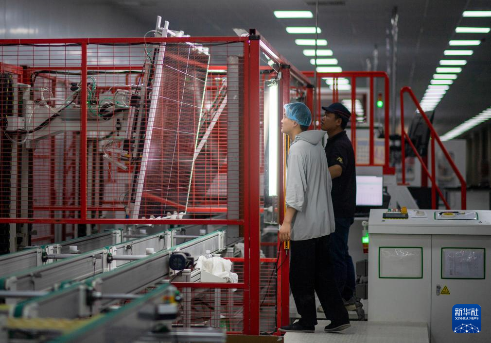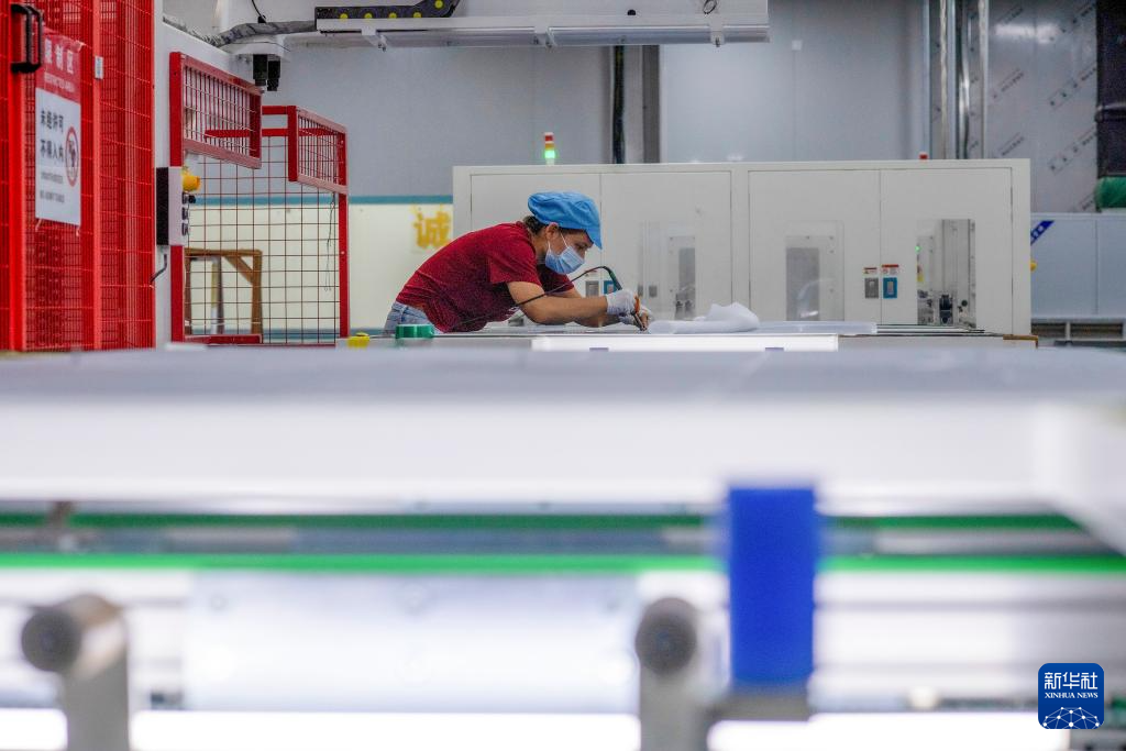 9月22日,工人在新疆巴音郭楞蒙古自治州若羌县的国晟企诚新能源有限公司生产光伏电池片。