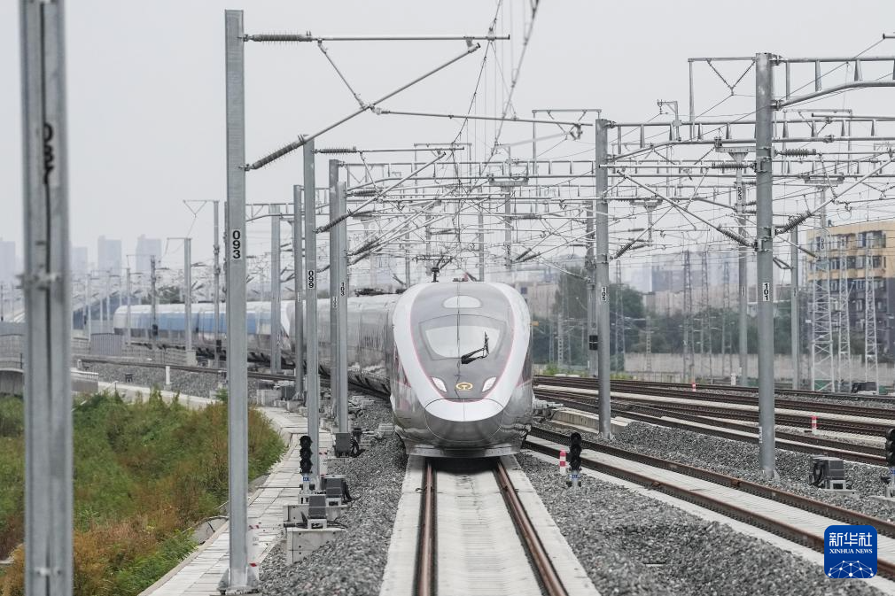 9月28日,从抚顺站开往长白山站的G8167次列车驶出抚顺站。新华社记者 潘昱龙 摄