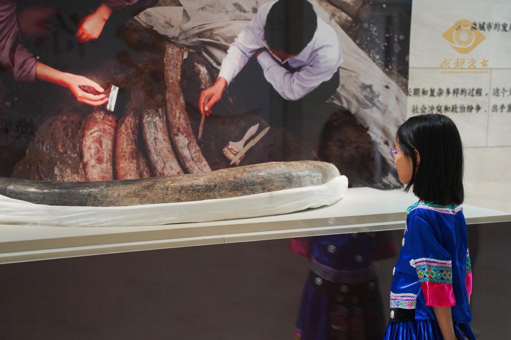在成都考古中心展出的象牙(资料图片)。新华社发