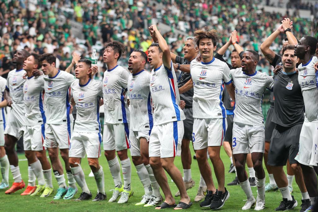 ↑7月19日,上海申花队球员在比赛后。新华社发(那宇奇摄)