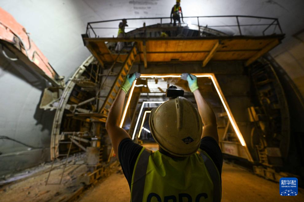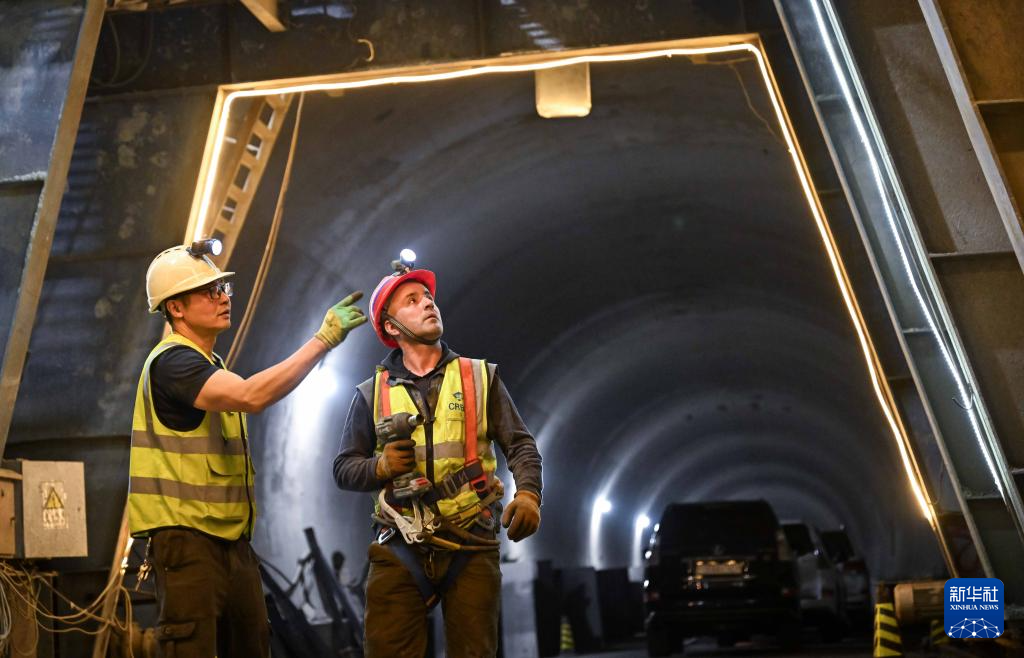 9月11日,工人在塔吉克斯坦卡拉依洪姆村附近的中塔公路二期工程1号隧道施工现场工作。 新华社记者 李任滋 摄