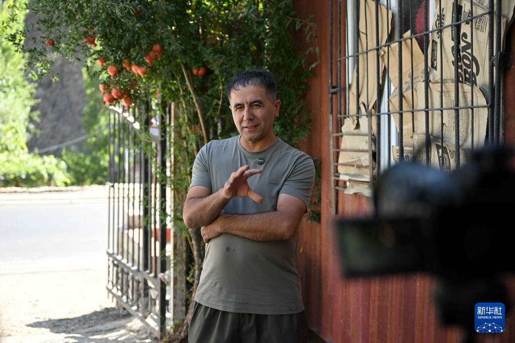 9月11日,在塔吉克斯坦卡拉依洪姆村附近,村民基什瓦尔接受新华社记者采访。 新华社记者 李任滋 摄
