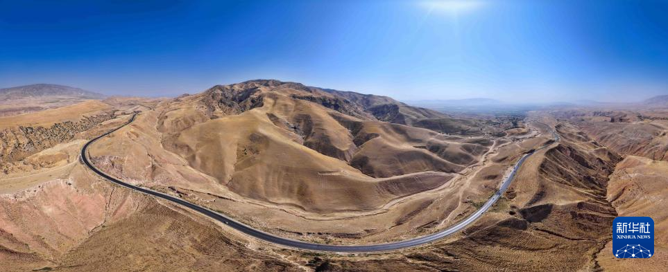 这是9月10日在塔吉克斯坦哈特隆州拍摄的中塔公路一期路段(无人机全景照片)。 新华社记者 李任滋 摄