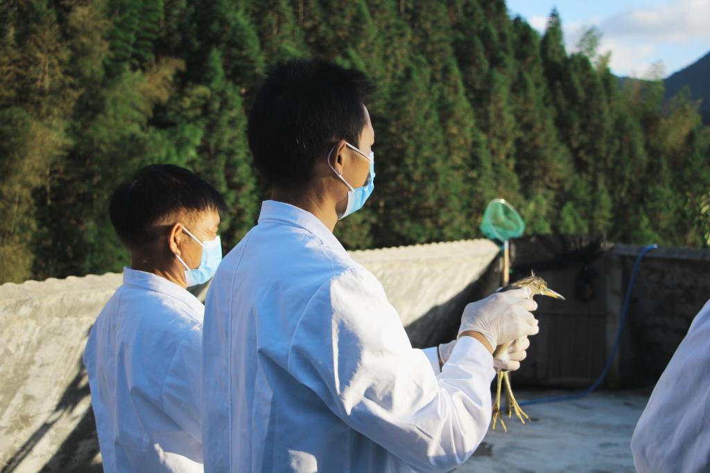 9月26日,江西南风面国家级自然保护区管理局工作人员完成候鸟环志工作,放飞候鸟。新华社记者陈浚武摄