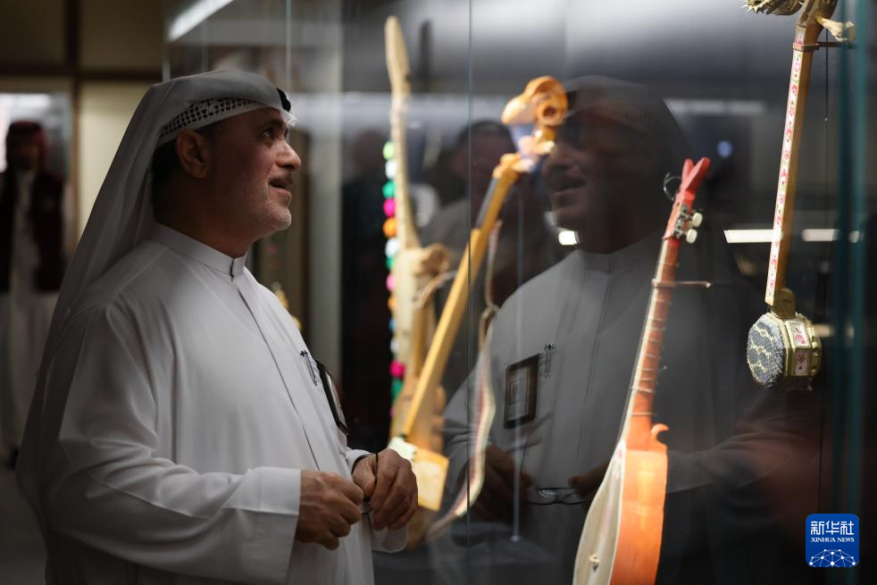 9月28日,在沙特阿拉伯首都利雅得,观众参观“天地同和——中国古代乐器展”。新华社记者 王海洲 摄