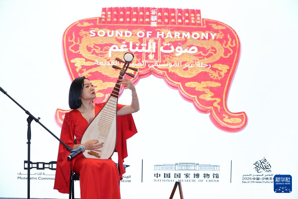 这是9月28日在沙特阿拉伯首都利雅得拍摄的“天地同和——中国古代乐器展”开幕式上的琵琶演奏表演。新华社记者 王海洲 摄