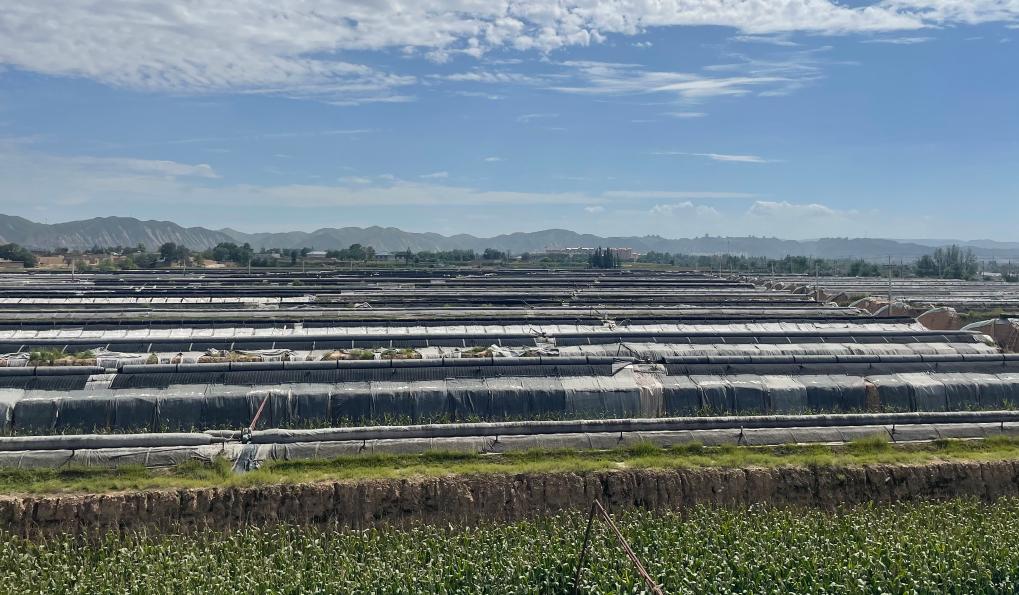 甘肃省靖远县三合村拍摄的蔬菜大棚。新华社记者马莎摄