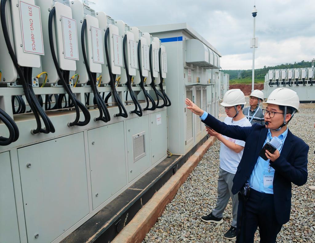 2025年7月24日,在云南省楚雄市吕合镇境内,工作人员正在介绍一储能项目。新华社记者 浦超 摄