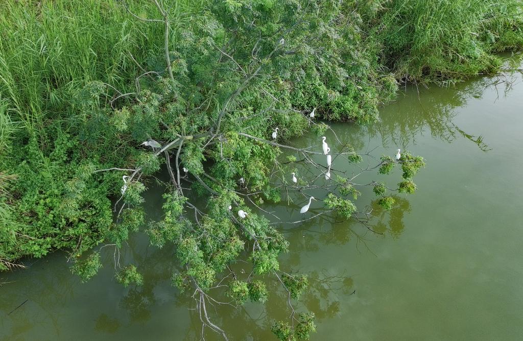 9月28日,鸟儿栖息在广州南沙湿地(无人机照片)。新华社记者 肖恩楠 摄