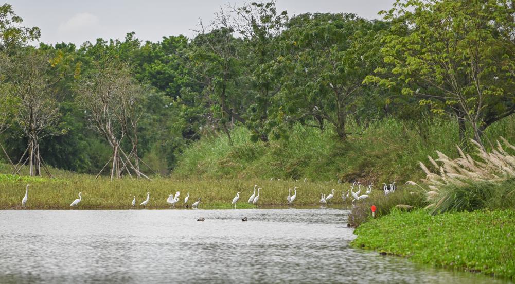 2020年以来,广州市累计修复湿地面积2000余公顷。南沙湿地内的红树林不仅为鱼虾、贝类提供良好的栖息环境,也为候鸟储备了丰富的食物资源,成为生机盎然的“生命食堂”。